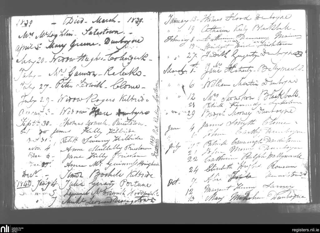 Dunboyne; County of Meath; Diocese of Meath. Deaths, Mar. 1839 to Oct. 1840
