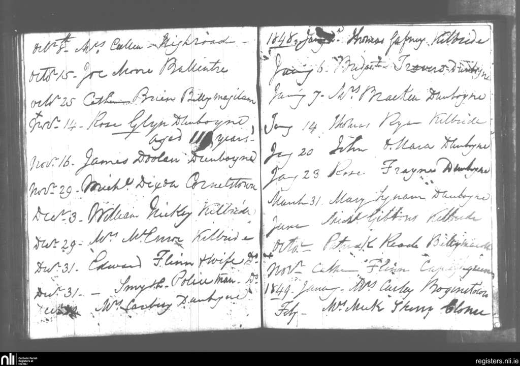Dunboyne; County of Meath; Diocese of Meath. Deaths, Oct. 1847 to Feb. 1849