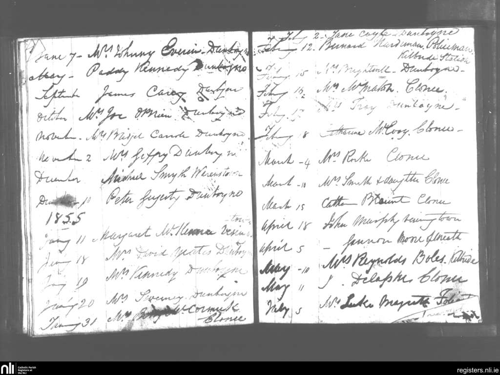 Dunboyne; County of Meath; Diocese of Meath. Deaths, May 1854 to July 1855