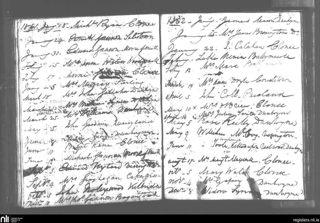 Dunboyne; County of Meath; Diocese of Meath. Deaths, Jan. 1861 to Dec. 1862