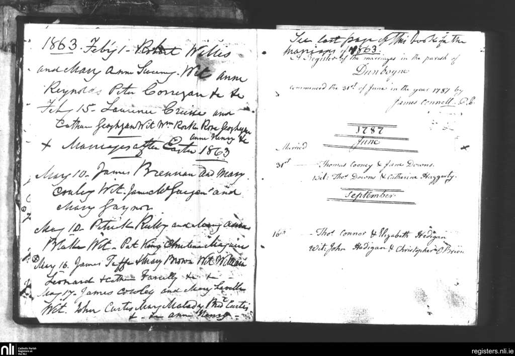 Dunboyne; County of Meath; Diocese of Meath. Marriages, June 1787 to May 1863