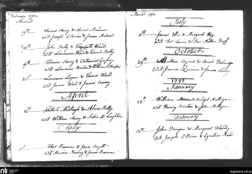 Dunboyne; County of Meath; Diocese of Meath. Marriages, Feb. 1792 to Feb. 1793