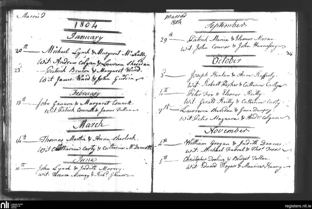 Dunboyne; County of Meath; Diocese of Meath. Marriages, Jan. 1804 to Nov. 1804