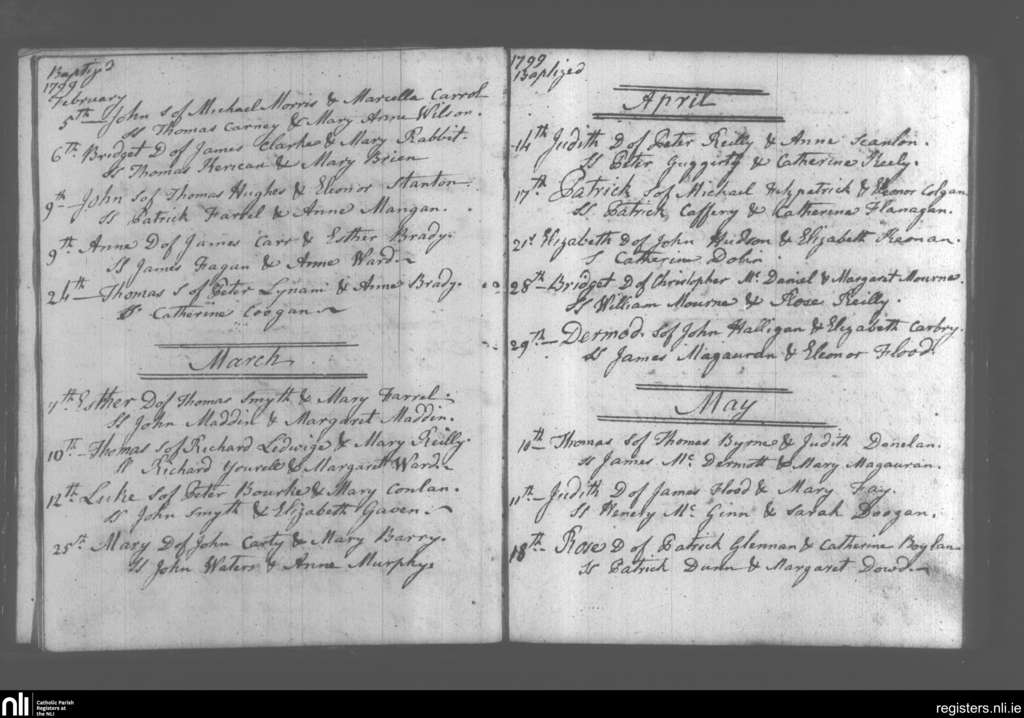 Dunboyne; County of Meath; Diocese of Meath. Baptisms, Feb. 1799 to May 1799