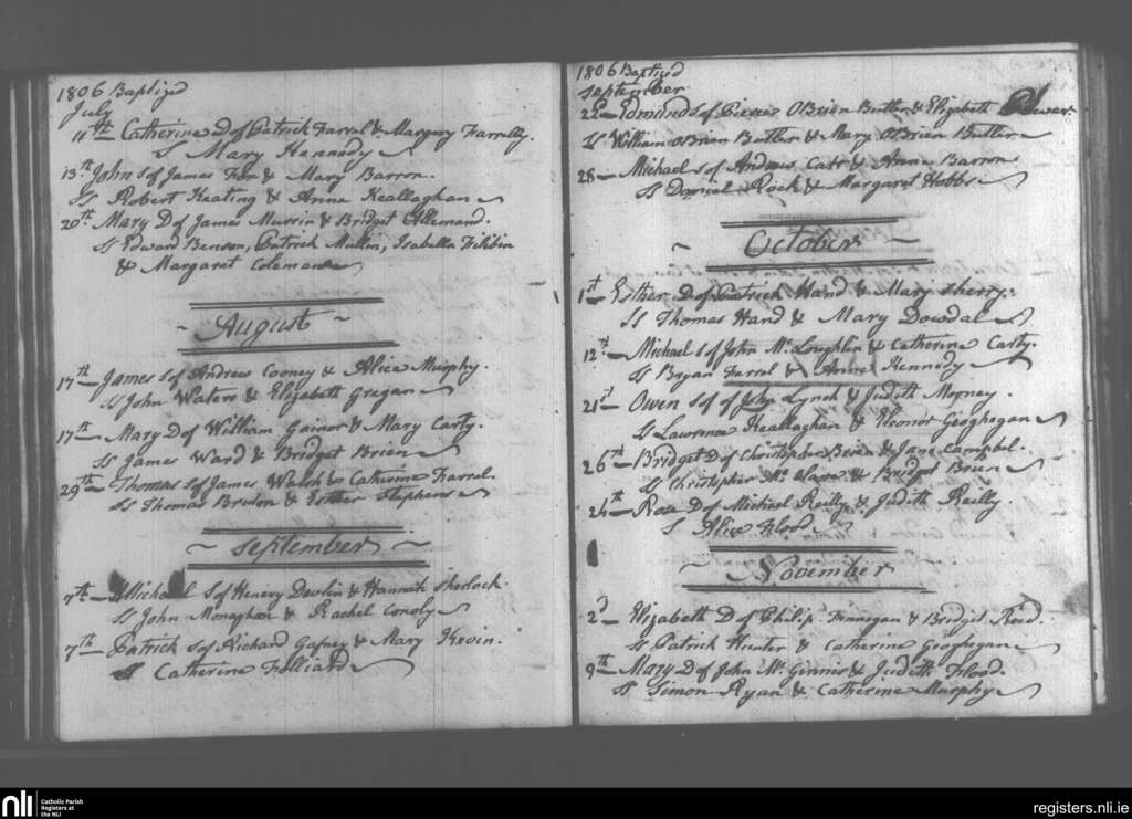 Dunboyne; County of Meath; Diocese of Meath. Baptisms, July 1806 to Nov. 1806