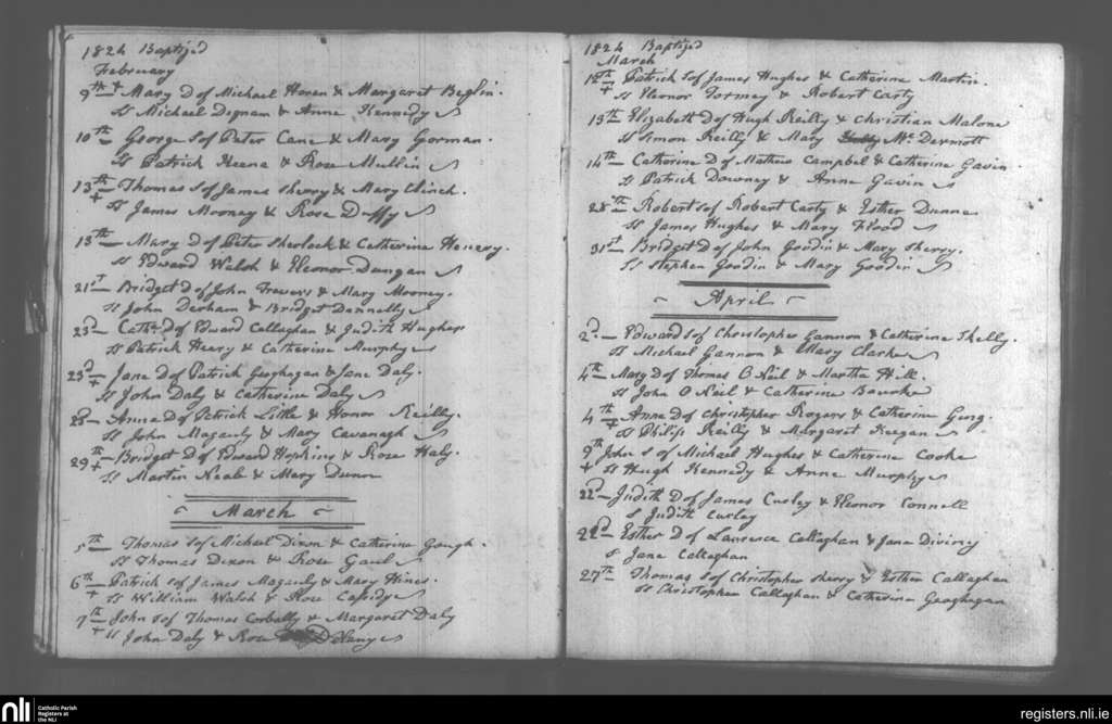 Dunboyne; County of Meath; Diocese of Meath. Baptisms, Feb. 1824 to Apr. 1824