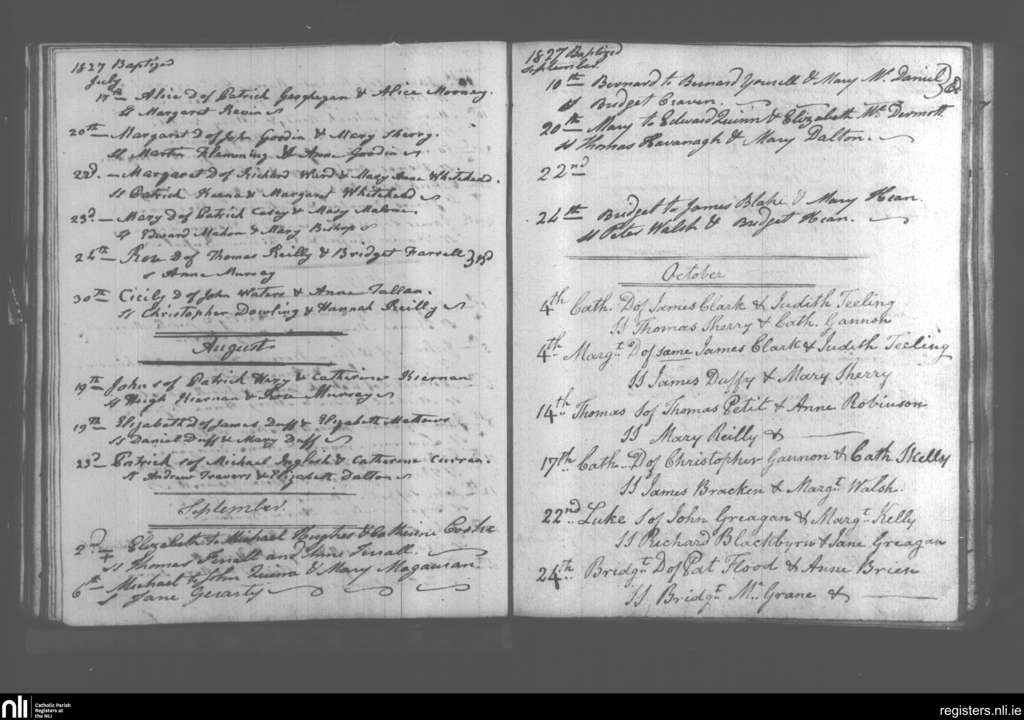 Dunboyne; County of Meath; Diocese of Meath. Baptisms, July 1827 to Oct. 1827