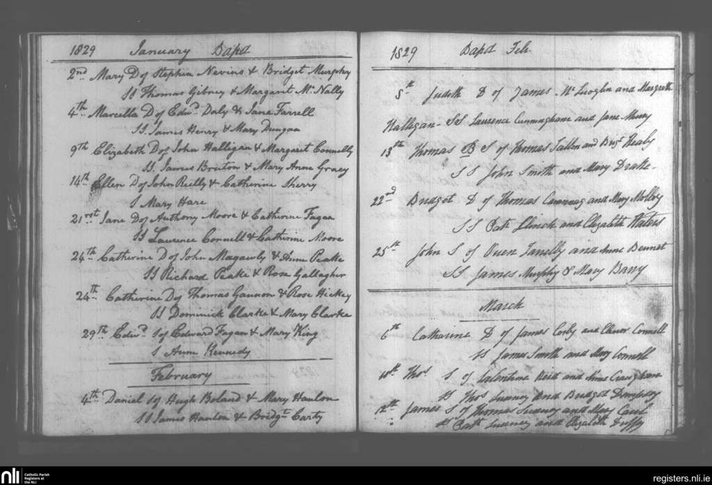 Dunboyne; County of Meath; Diocese of Meath. Baptisms, Jan. 1829 to Mar. 1829