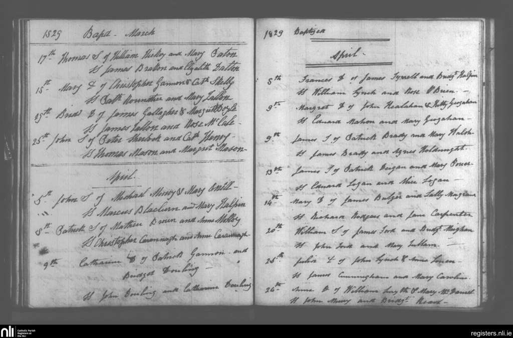 Dunboyne; County of Meath; Diocese of Meath. Baptisms, Mar. 1829 to Apr. 1829