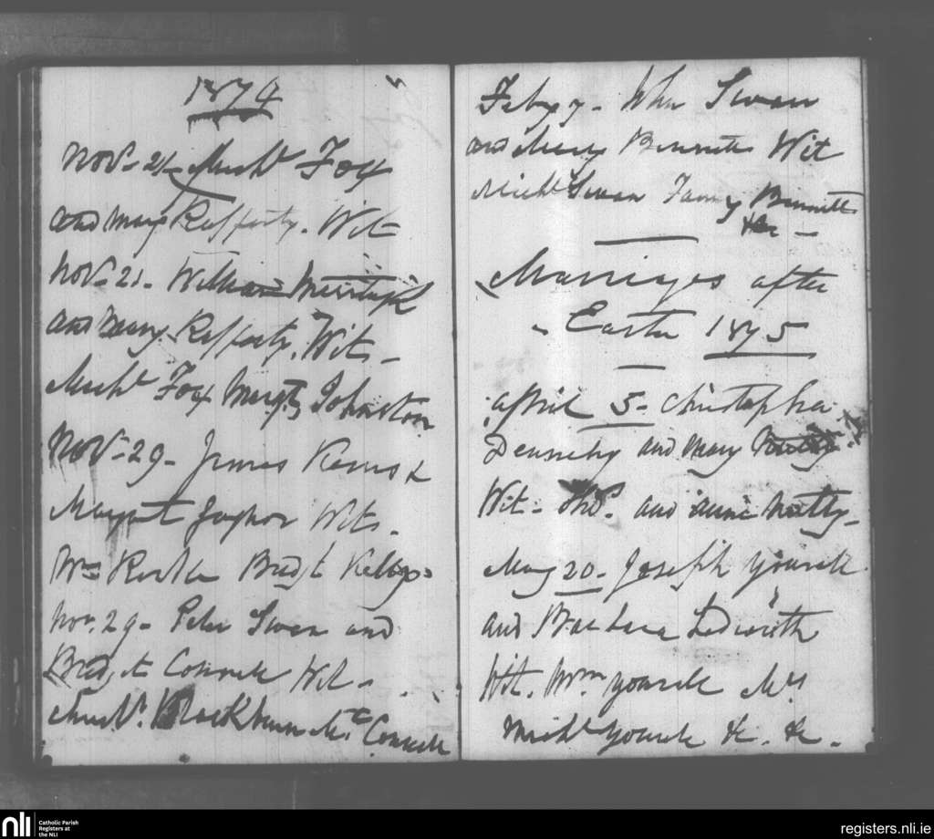 Dunboyne; County of Meath; Diocese of Meath. Marriages, Nov. 1874 to May 1875