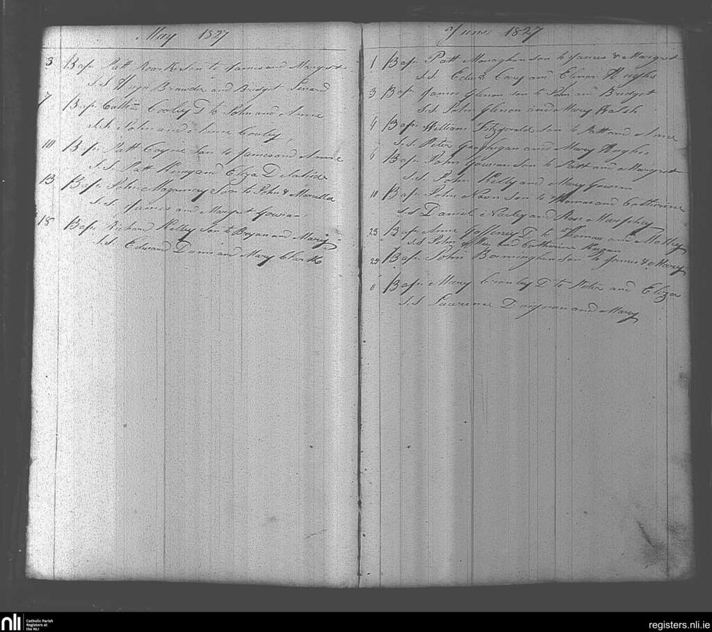 Castlejordan; County of Meath, Offaly; Diocese of Meath. Baptisms, May 1827 to June 1827