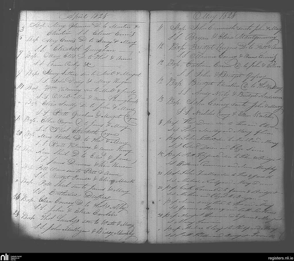 Castlejordan; County of Meath, Offaly; Diocese of Meath. Baptisms, Apr. 1828 to May 1828