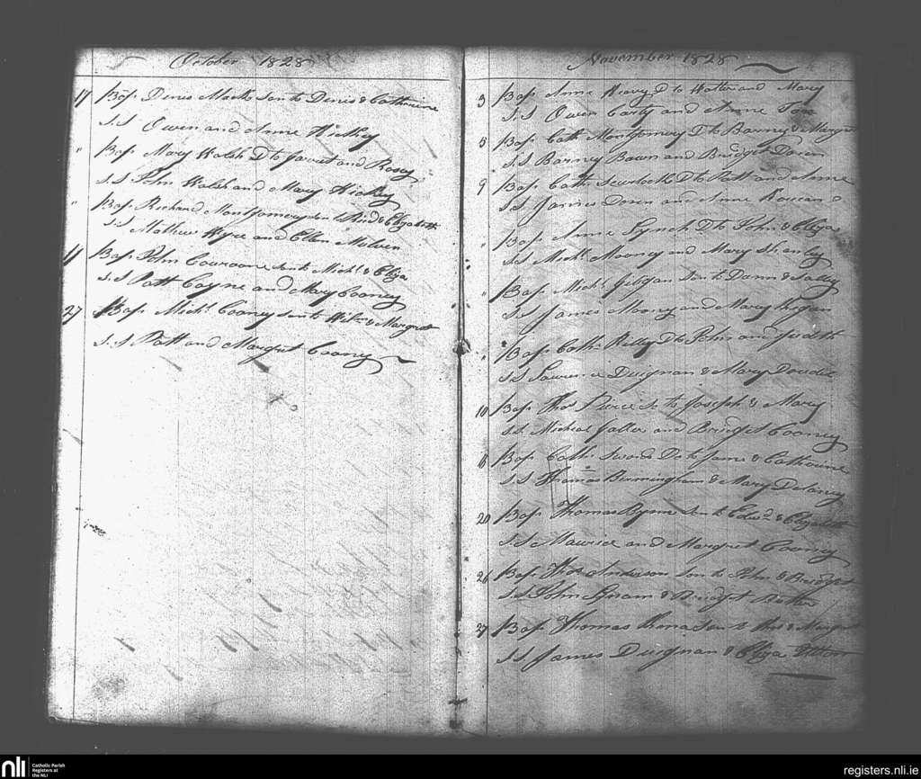 Castlejordan; County of Meath, Offaly; Diocese of Meath. Baptisms, Oct. 1828 to Nov. 1828