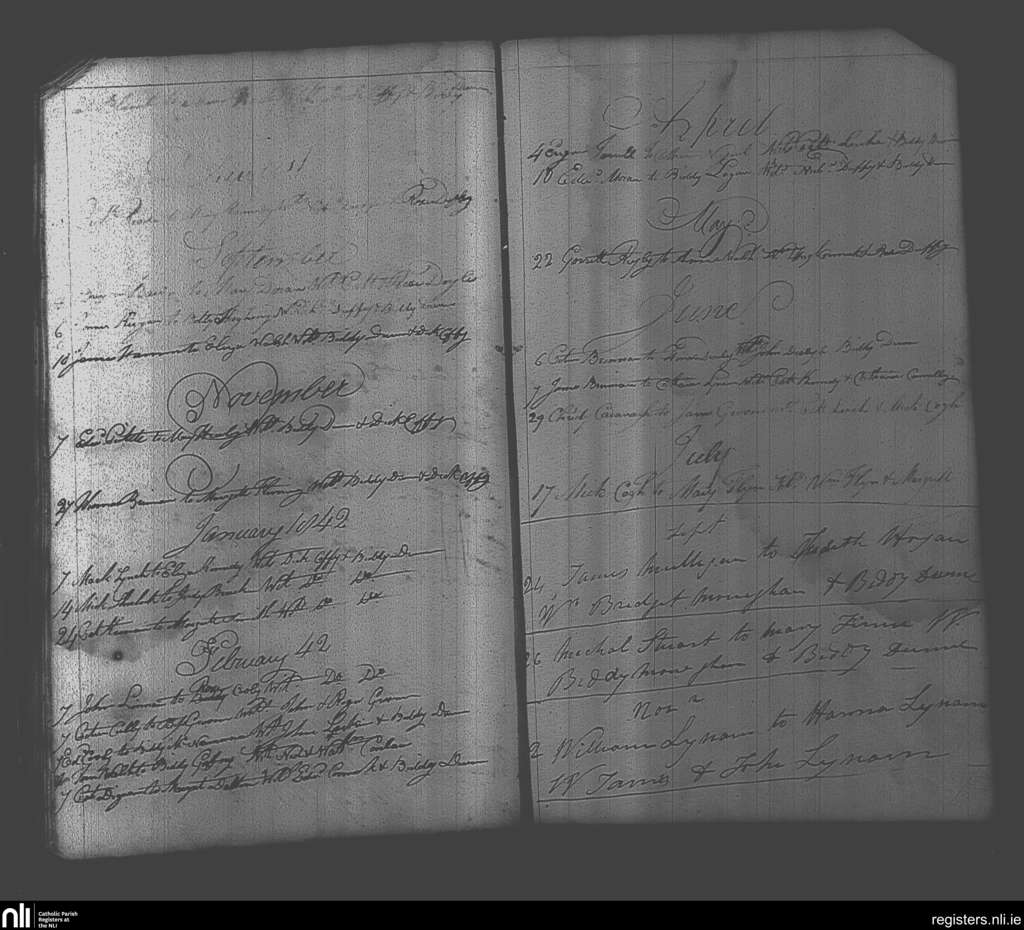 Castlejordan; County of Meath, Offaly; Diocese of Meath. Marriages, July 1841 to Nov. 1842