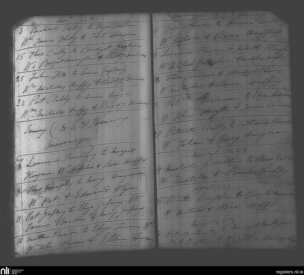Castlejordan; County of Meath, Offaly; Diocese of Meath. Marriages, Nov. 1842 to May 1843