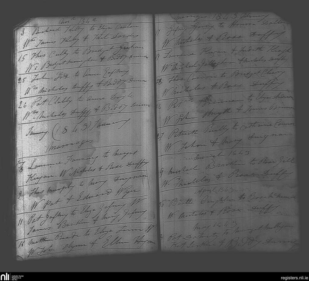 Castlejordan; County of Meath, Offaly; Diocese of Meath. Marriages, Nov. 1842 to May 1843