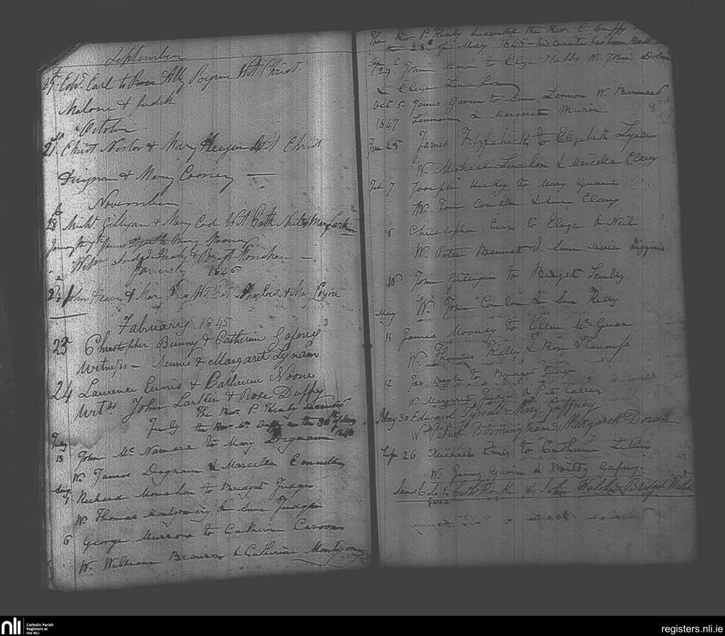 Castlejordan; County of Meath, Offaly; Diocese of Meath. Marriages, Feb. 1845 to Sep. 1847