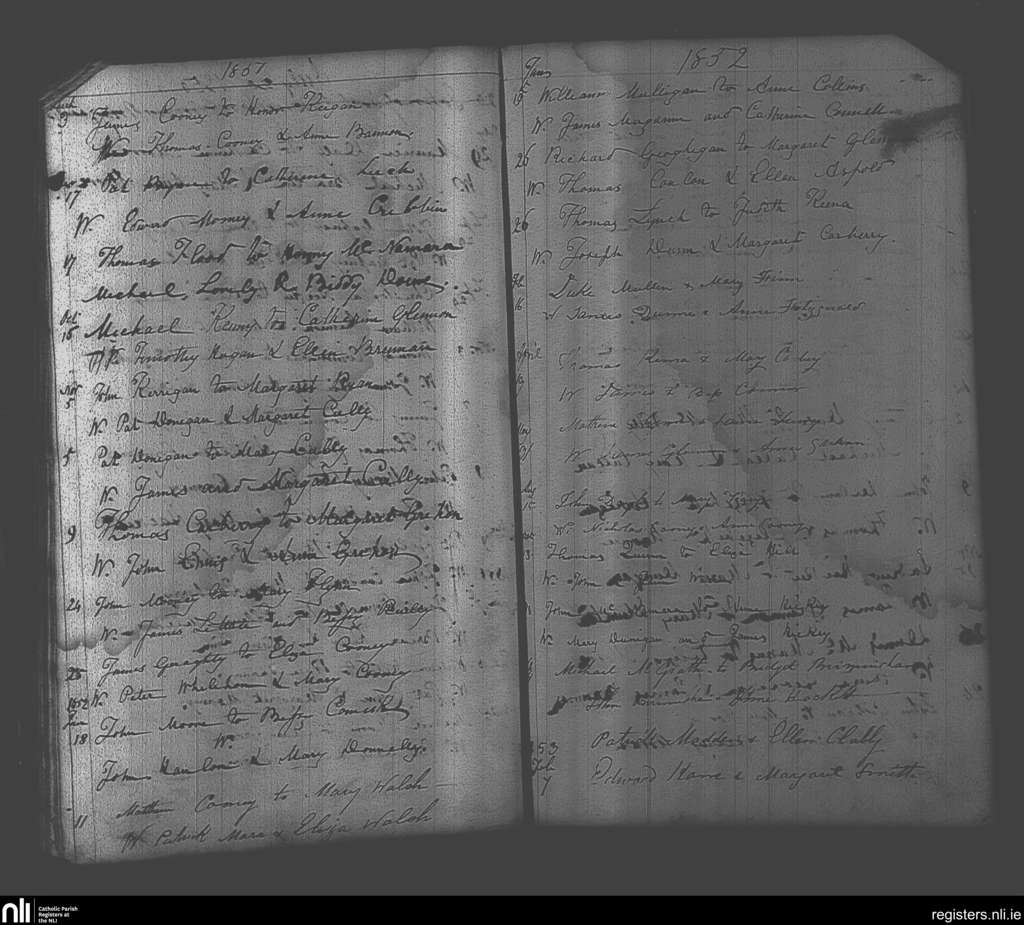 Castlejordan; County of Meath, Offaly; Diocese of Meath. Marriages, Mar. 1851 to Feb. 1853