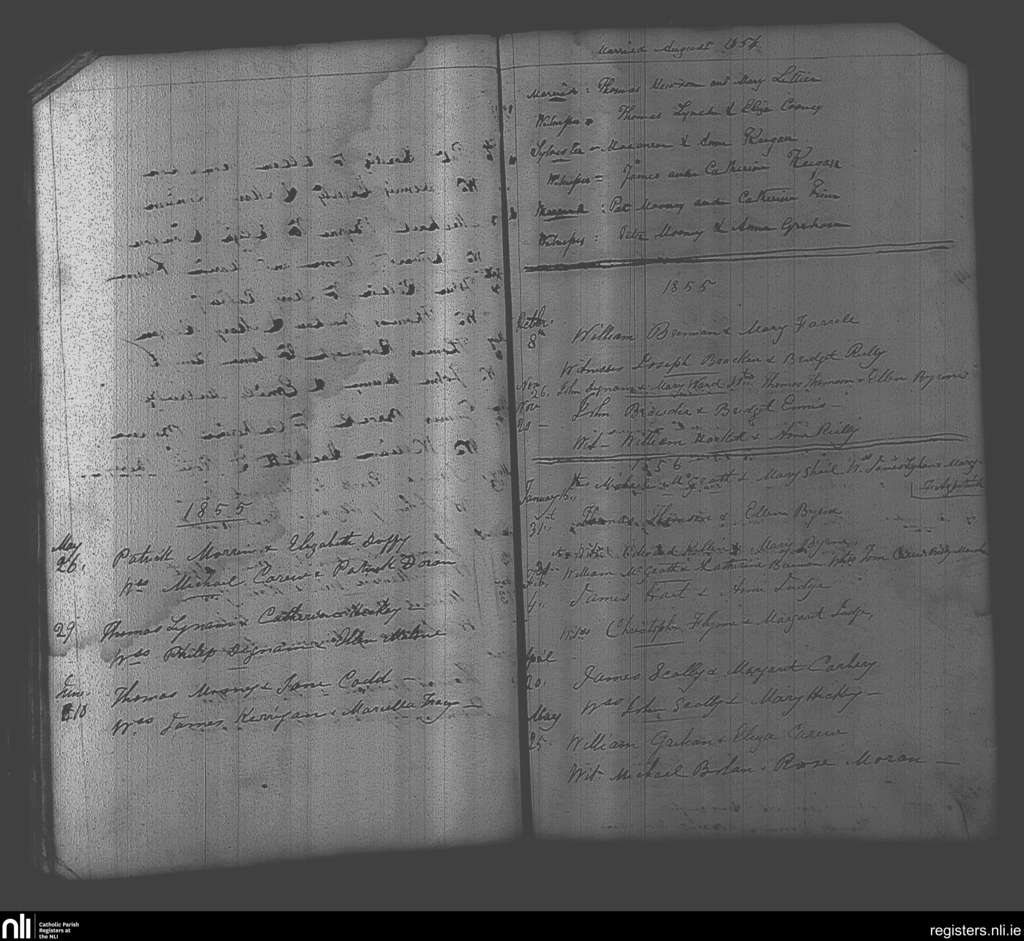 Castlejordan; County of Meath, Offaly; Diocese of Meath. Marriages, Aug. 1854 to May 1856