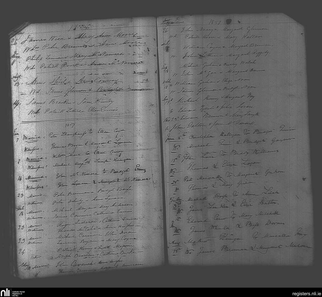Castlejordan; County of Meath, Offaly; Diocese of Meath. Marriages, May 1856 to Nov. 1857