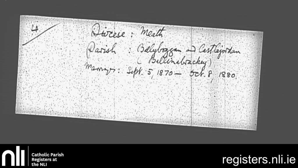Castlejordan; County of Meath, Offaly; Diocese of Meath. Marriages