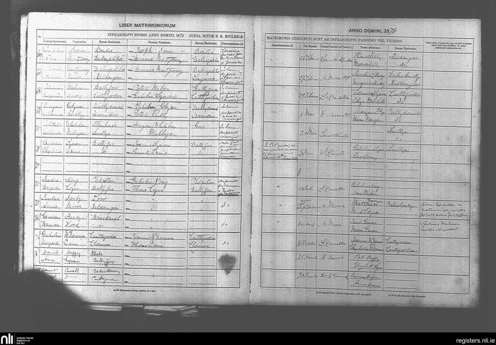 Castlejordan; County of Meath, Offaly; Diocese of Meath. Marriages, Feb. 1876 to Nov. 1876
