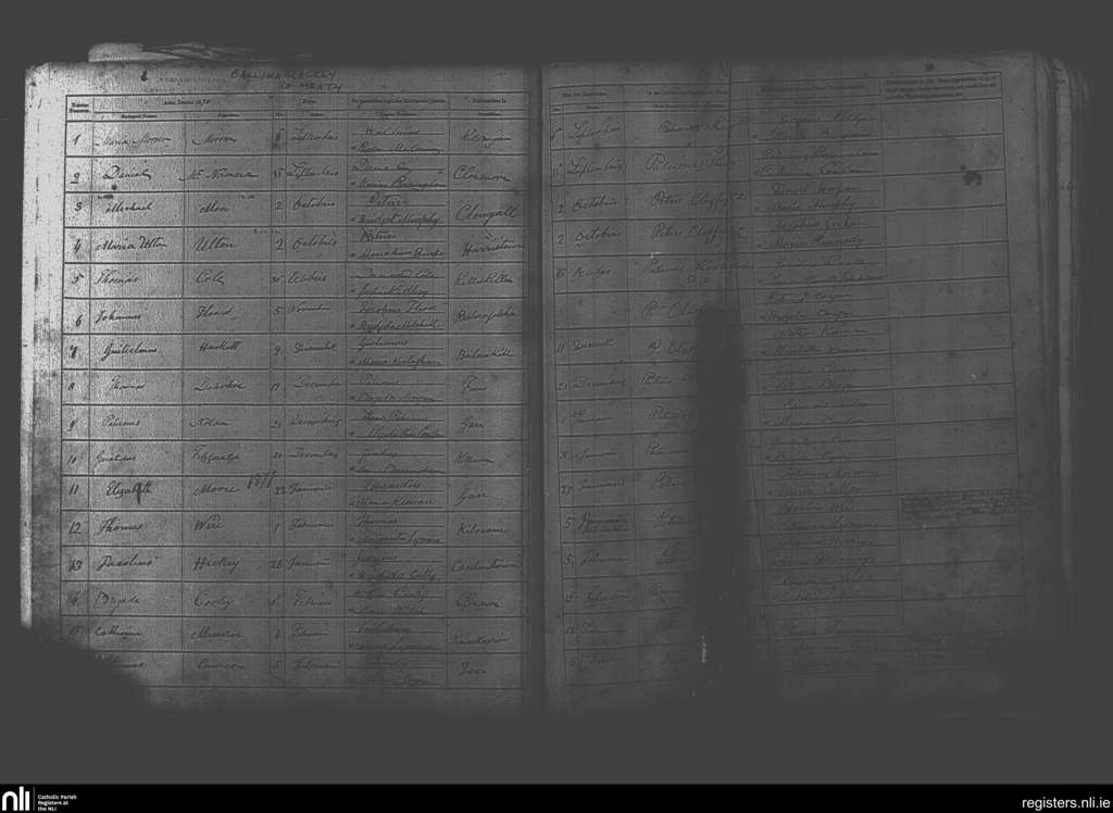 Castlejordan; County of Meath, Offaly; Diocese of Meath. Baptisms, Sep. 1870 to Feb. 1871