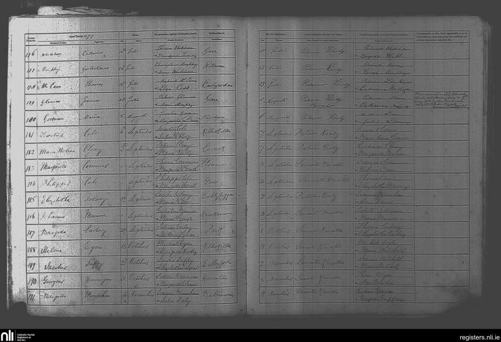 Castlejordan; County of Meath, Offaly; Diocese of Meath. Baptisms, July 1873 to Nov. 1873
