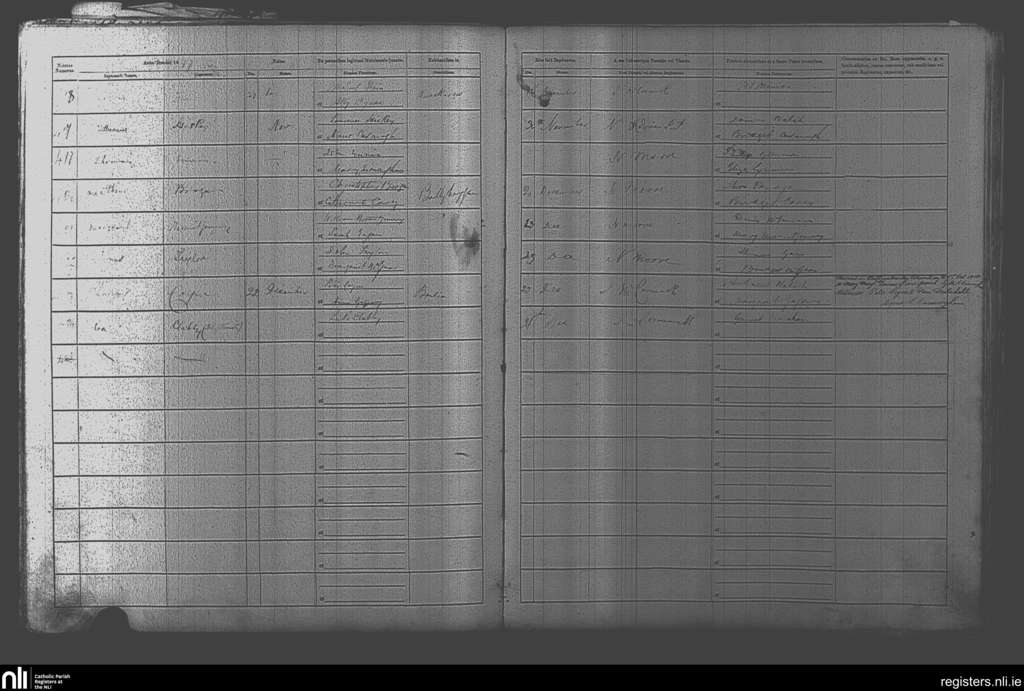 Castlejordan; County of Meath, Offaly; Diocese of Meath. Baptisms, Nov. 1877 to Dec. 1877