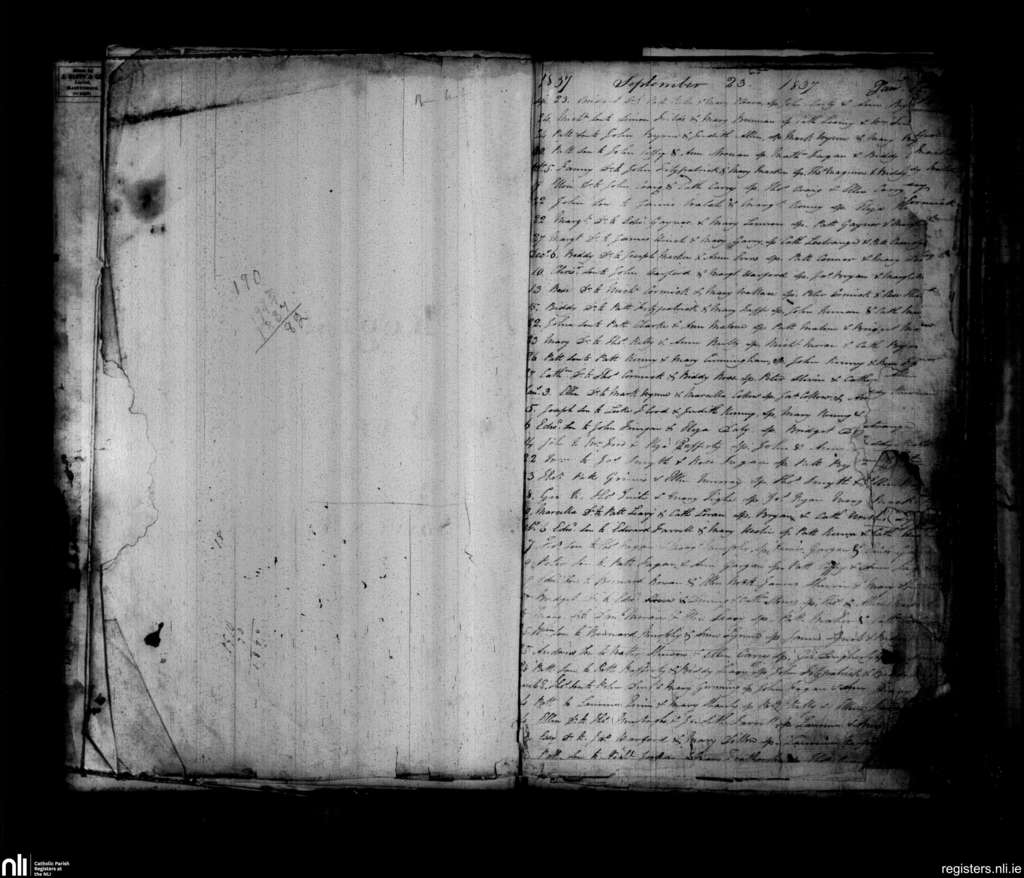 Sonna; County of Westmeath; Diocese of Meath. Baptisms, Sep. 1837 to Mar. 1838