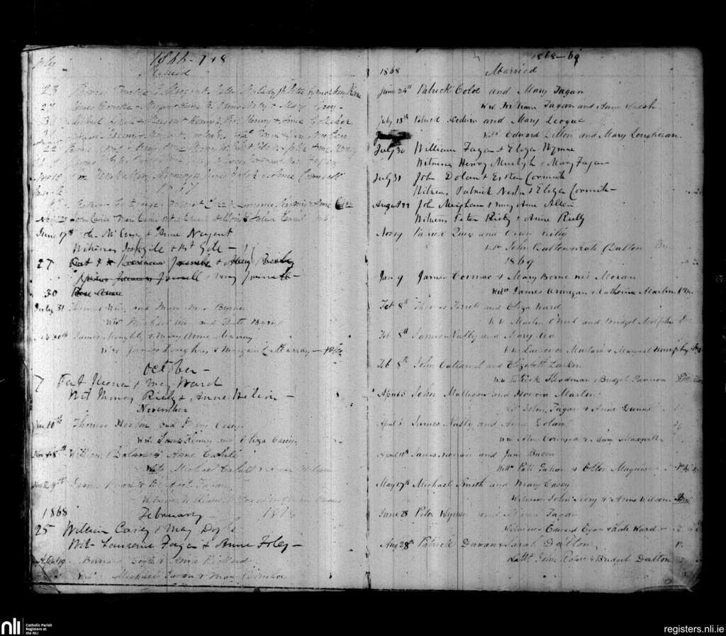 Sonna; County of Westmeath; Diocese of Meath. Marriages, July 1866 to Aug. 1869