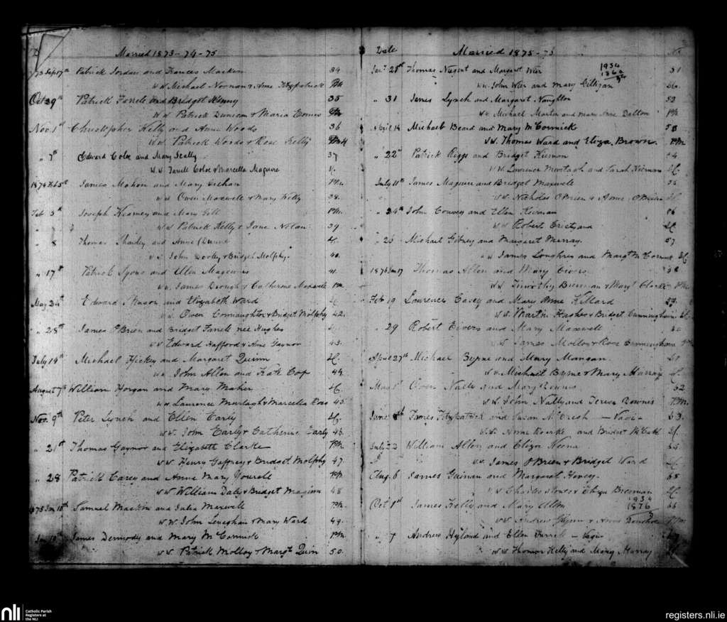 Sonna; County of Westmeath; Diocese of Meath. Marriages, Sep. 1873 to Oct. 1876