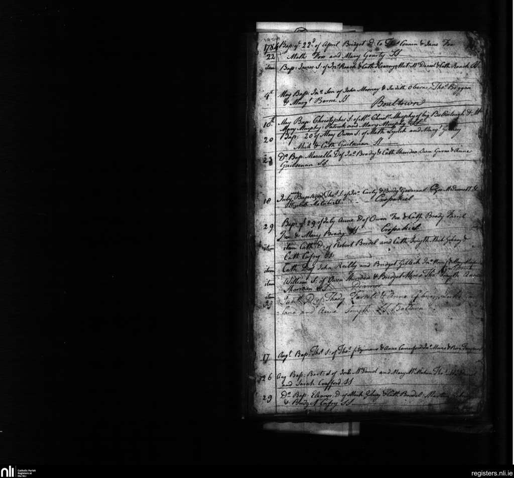 Kilskyre; County of Meath; Diocese of Meath. Baptisms, Apr. 1784 to Aug. 1784