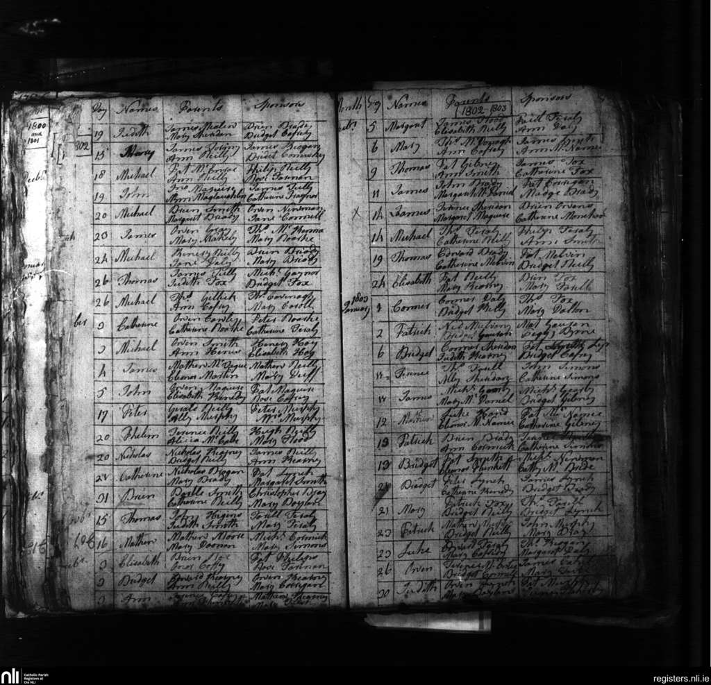 Kilskyre; County of Meath; Diocese of Meath. Baptisms, Sep. 1802 to Jan. 1803