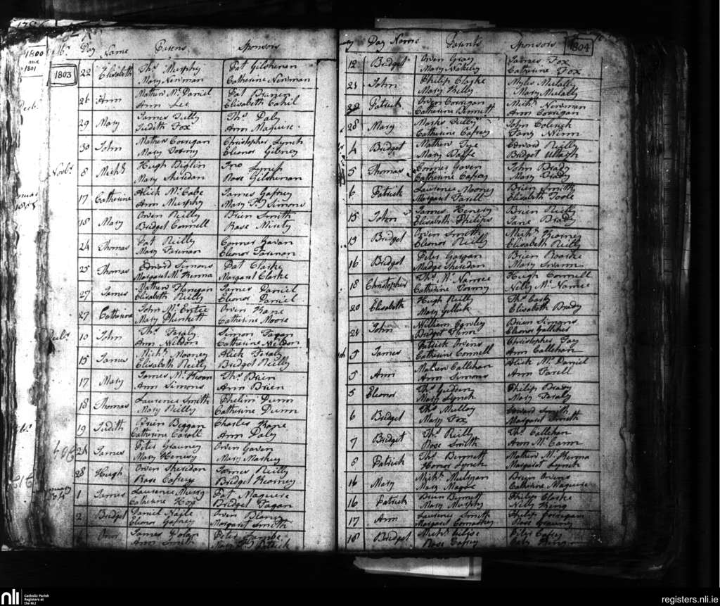 Kilskyre; County of Meath; Diocese of Meath. Baptisms, Oct. 1803 to Mar. 1804