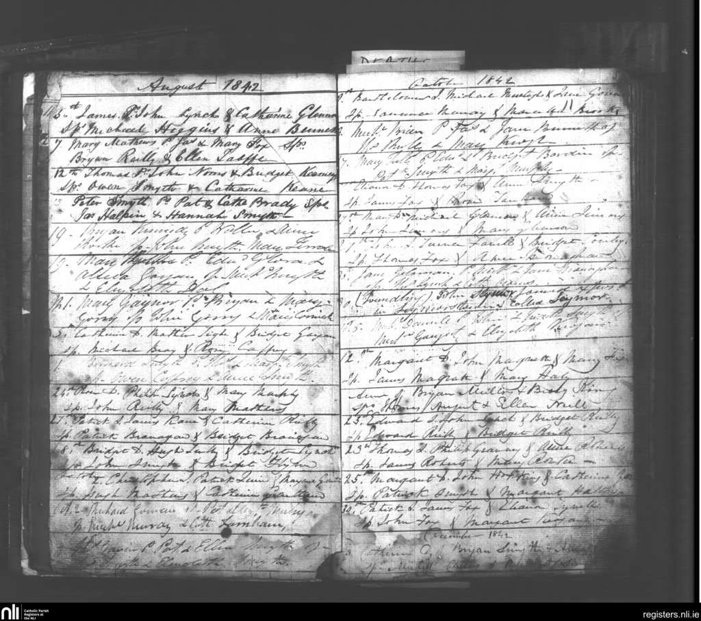 Kilskyre; County of Meath; Diocese of Meath. Baptisms, Aug. 1842 to Dec. 1842
