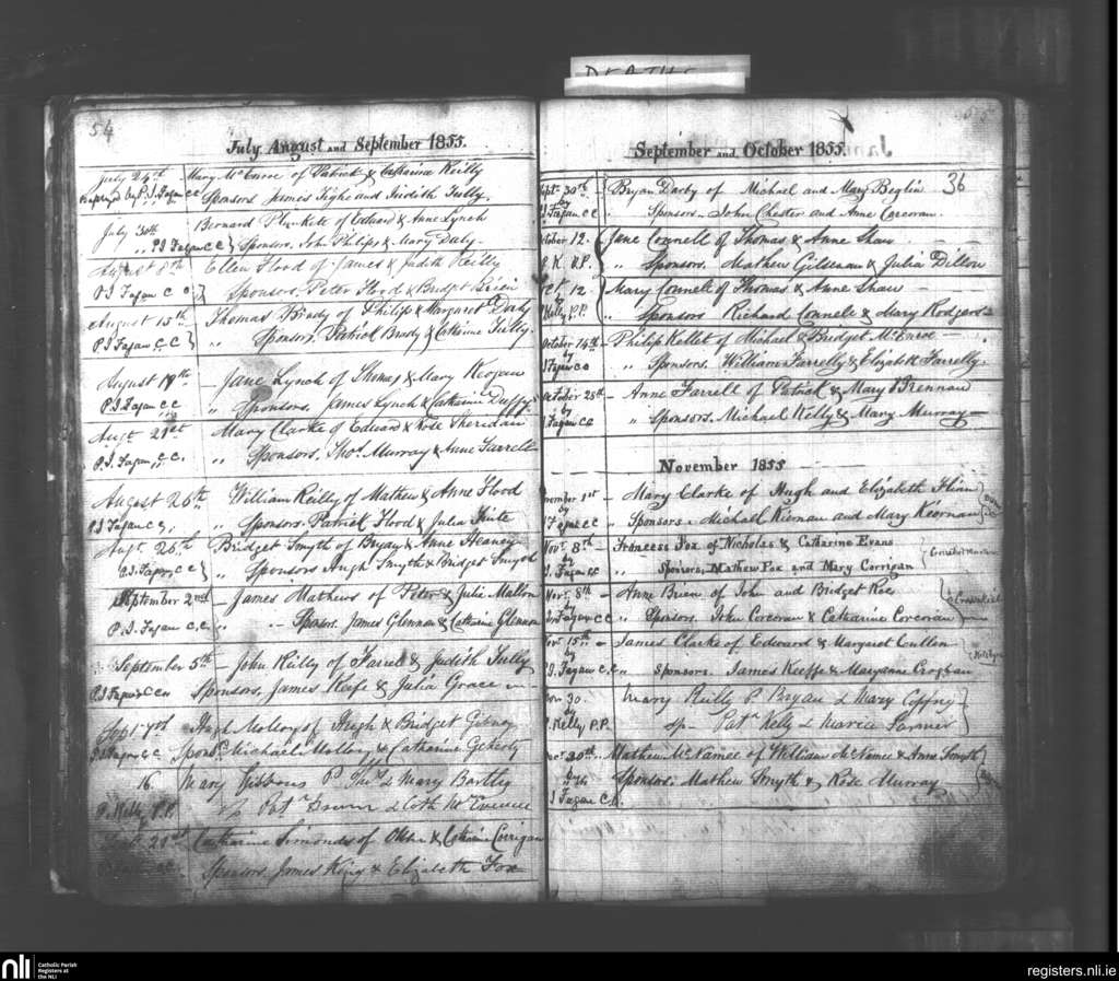 Kilskyre; County of Meath; Diocese of Meath. Baptisms, July 1855 to Dec. 1855