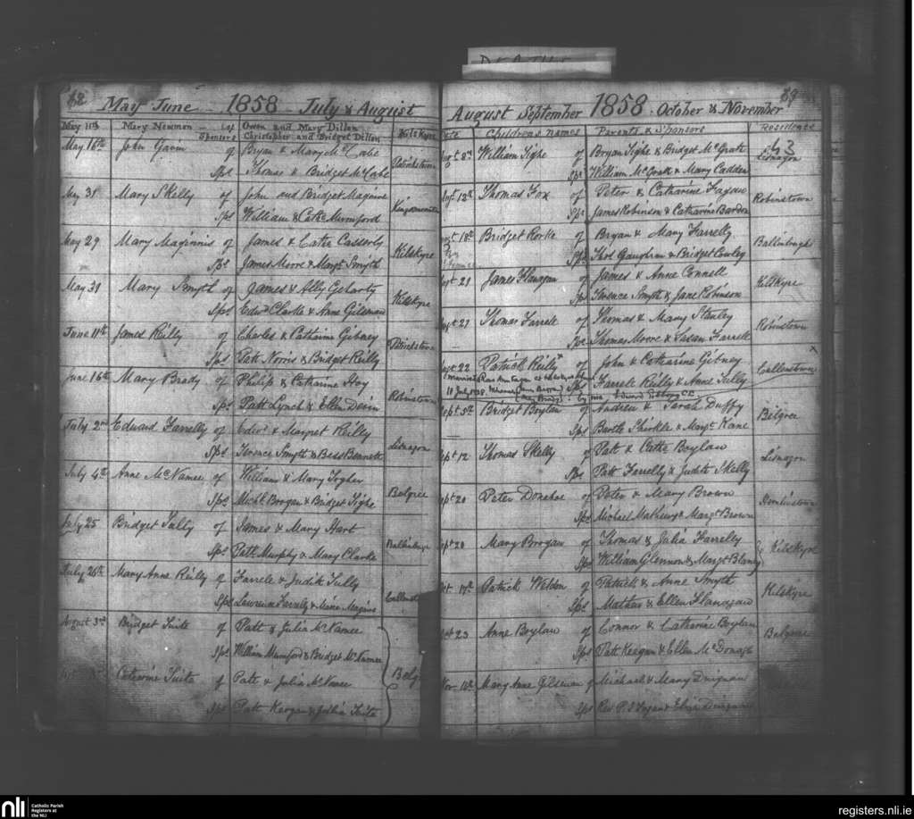 Kilskyre; County of Meath; Diocese of Meath. Baptisms, May 1858 to Nov. 1858