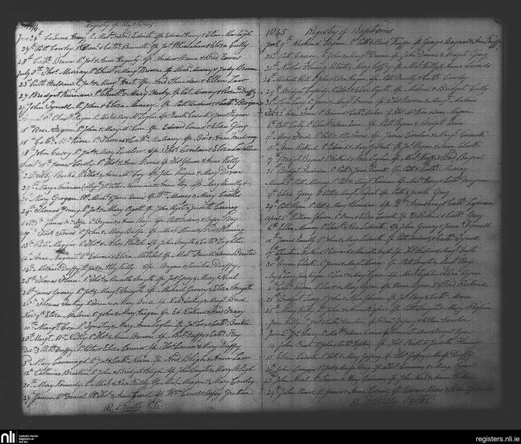 Balliver; County of Meath; Diocese of Meath. Baptisms, June 1844 to June 1845