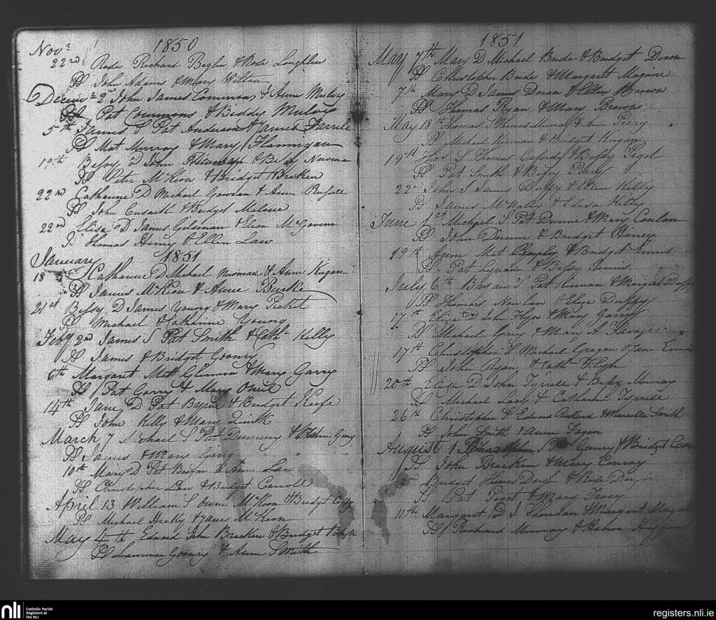 Balliver; County of Meath; Diocese of Meath. Baptisms, Nov. 1850 to Aug. 1851