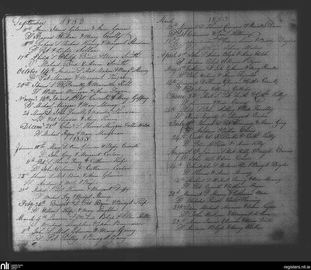 Balliver; County of Meath; Diocese of Meath. Baptisms, Sep. 1852 to Aug. 1853