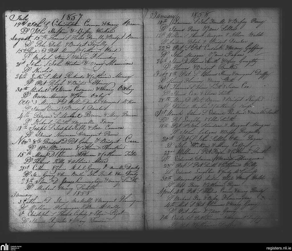 Balliver; County of Meath; Diocese of Meath. Baptisms, July 1857 to Apr. 1858