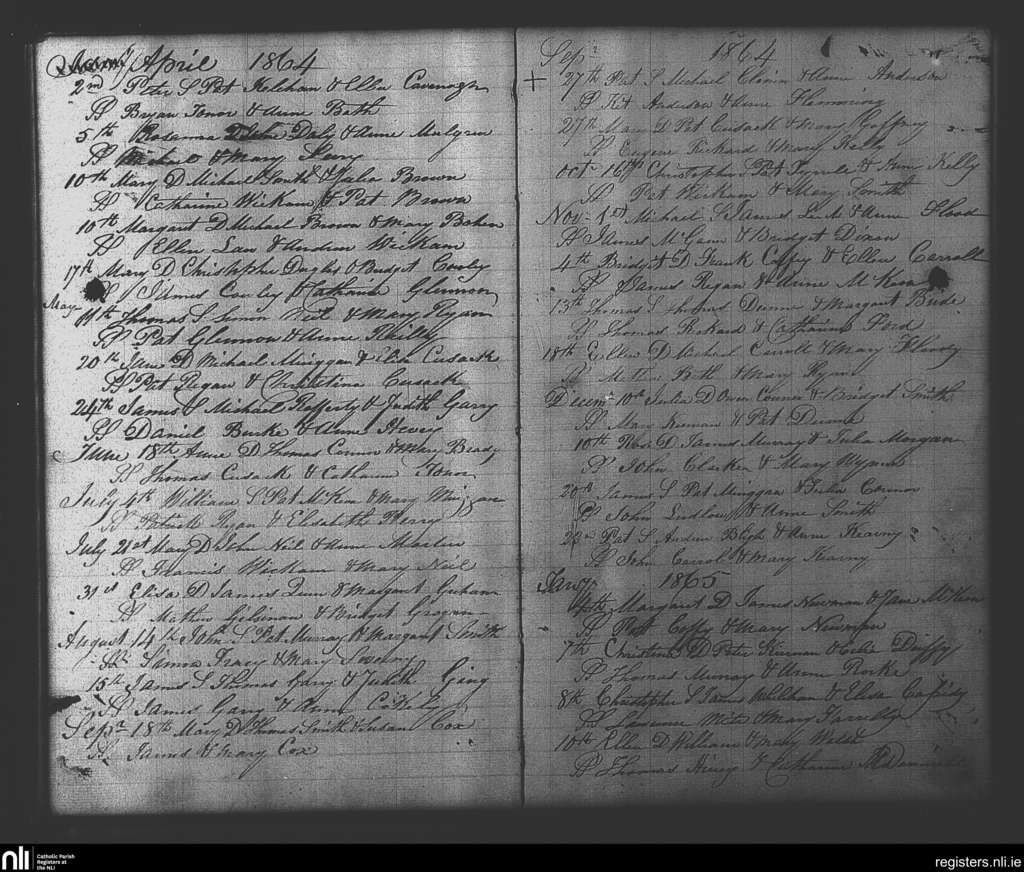 Balliver; County of Meath; Diocese of Meath. Baptisms, Apr. 1864 to Jan. 1865