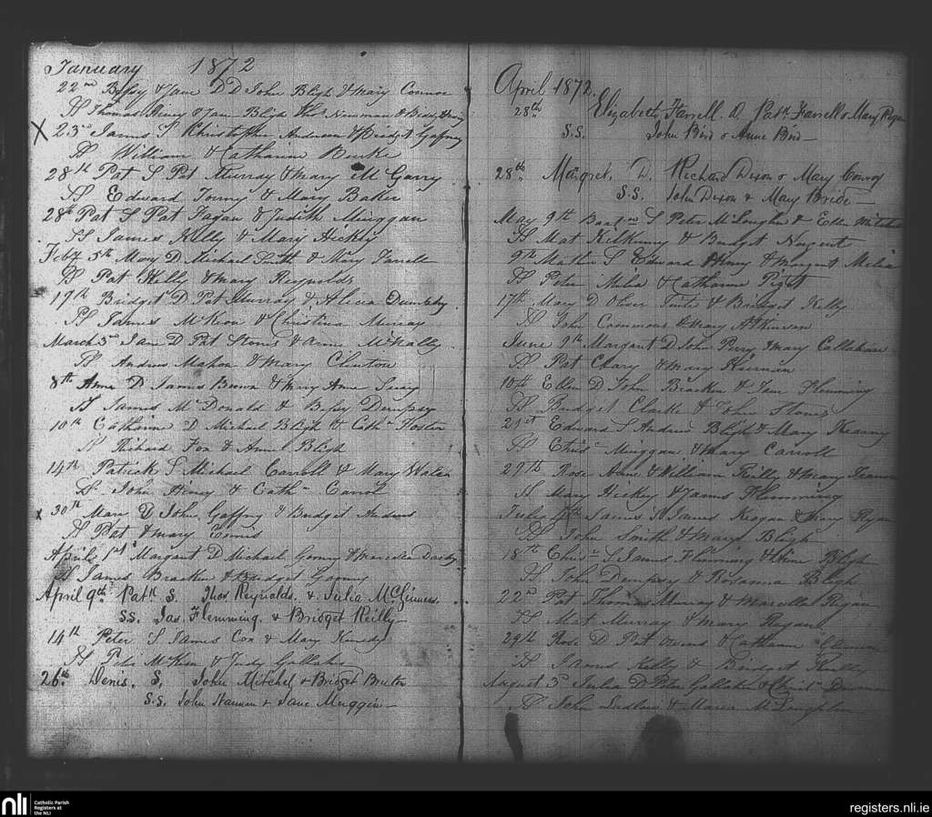 Balliver; County of Meath; Diocese of Meath. Baptisms, Jan. 1872 to Aug. 1872