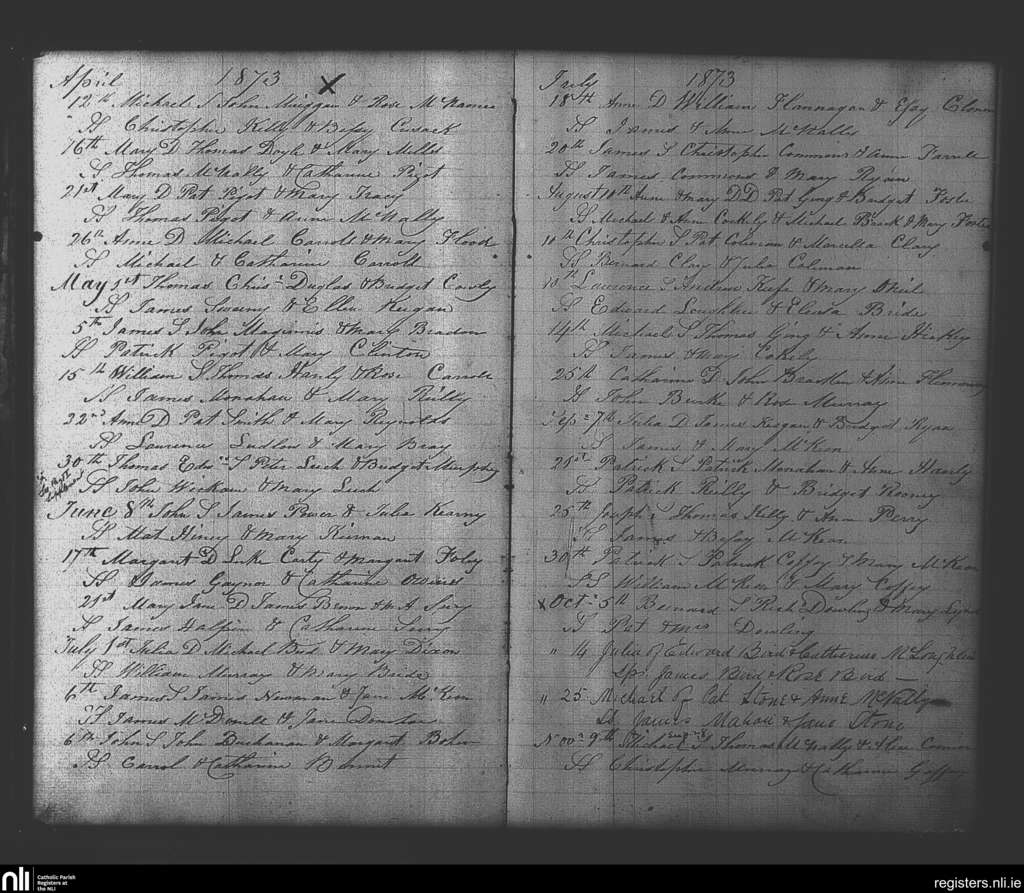 Balliver; County of Meath; Diocese of Meath. Baptisms, Apr. 1873 to Nov. 1873