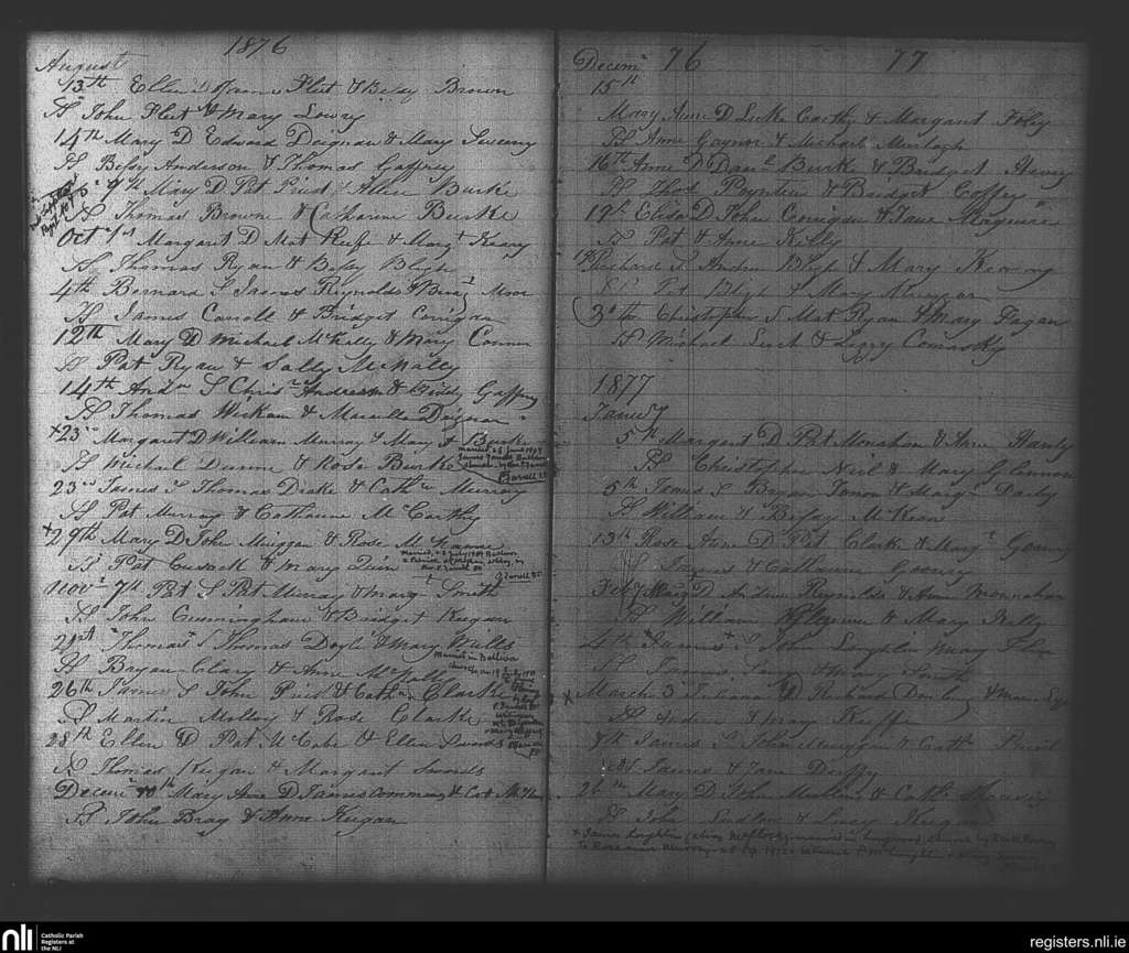 Balliver; County of Meath; Diocese of Meath. Baptisms, Marriages, Aug. 1876 to Sep. 1912
