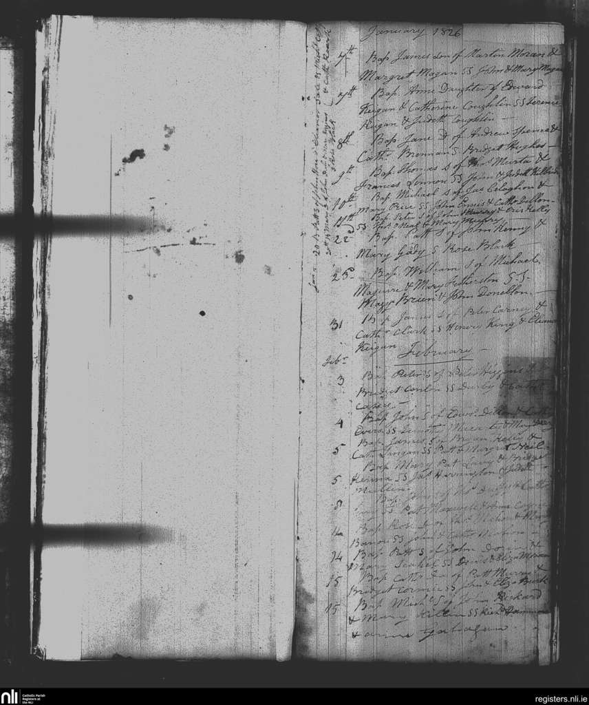 Ballymore; County of Westmeath; Diocese of Meath. Baptisms, Jan. 1826 to Feb. 1826