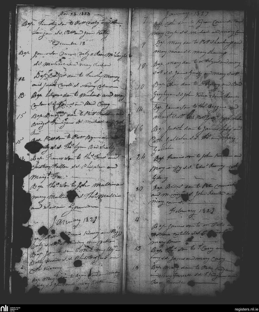 Ballymore; County of Westmeath; Diocese of Meath. Baptisms, Nov. 1828 to Feb. 1829