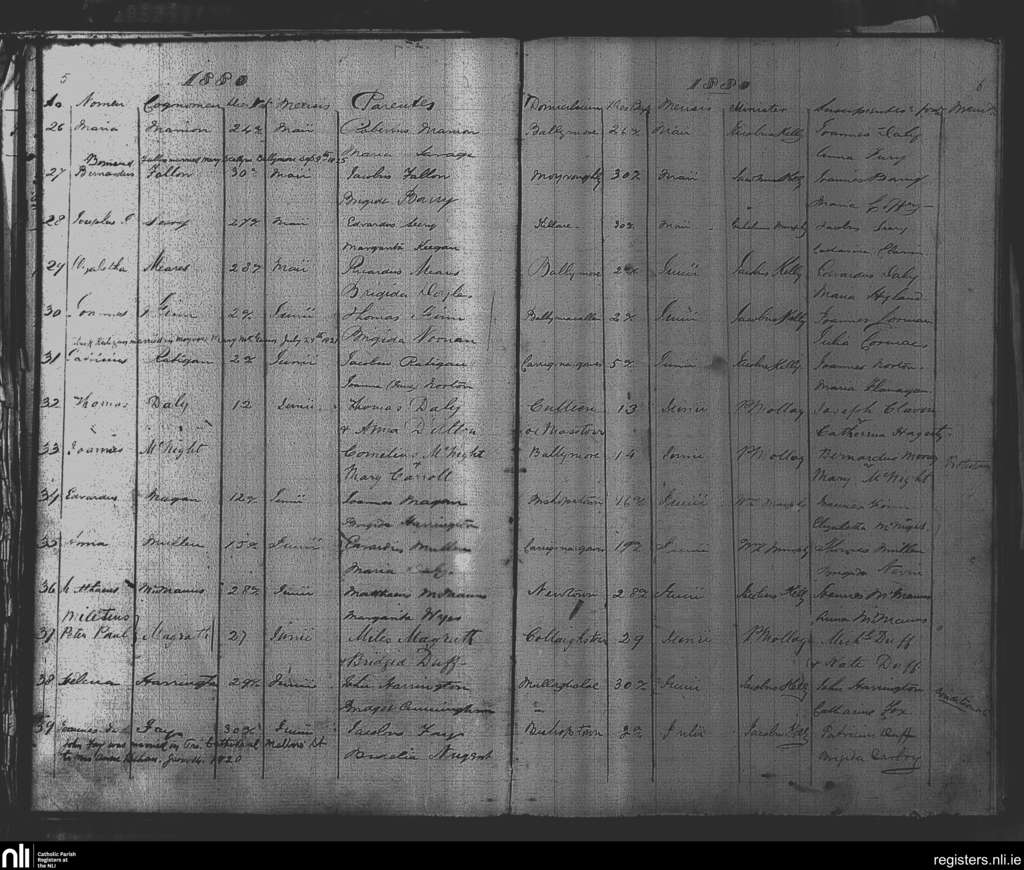 Ballymore; County of Westmeath; Diocese of Meath. Baptisms, Marriages, May 1880 to Sep. 1925