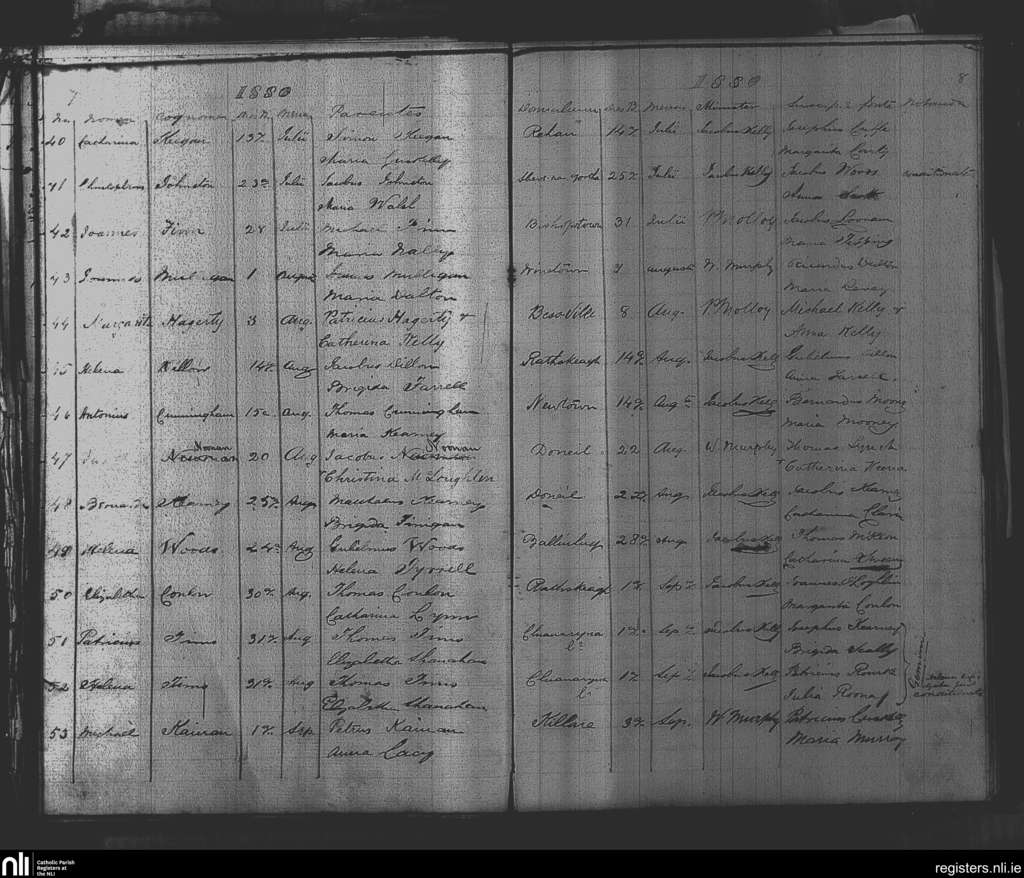 Ballymore; County of Westmeath; Diocese of Meath. Baptisms, July 1880 to Sep. 1880